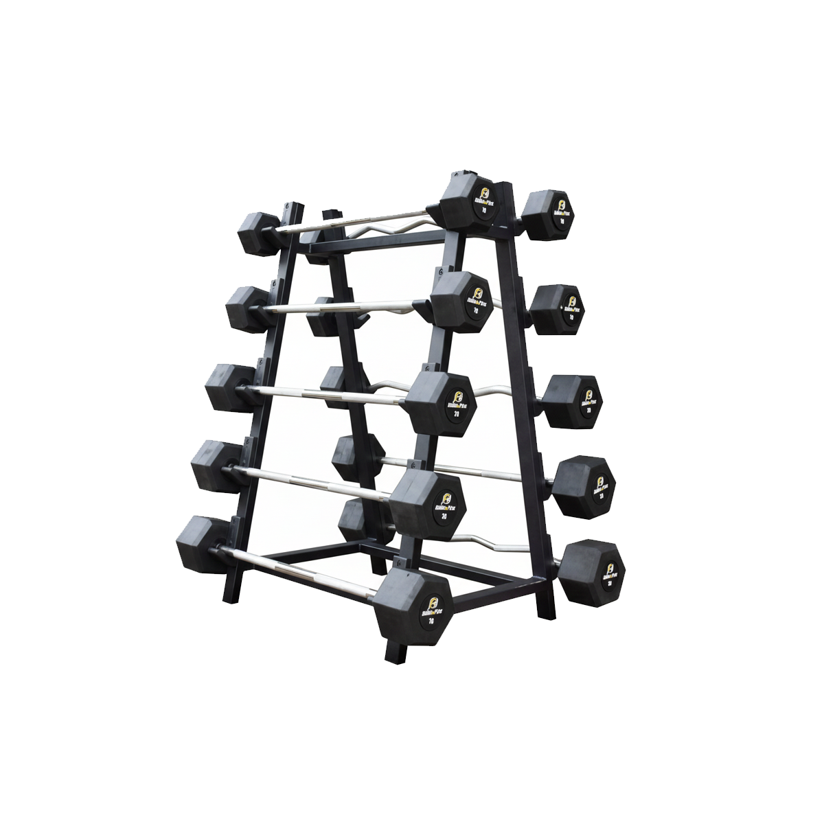 Seu design com extremidades sextavadas (faces planas) impede que a barra role pelo chão,garantindo muito mais segurança e organização na área de treino